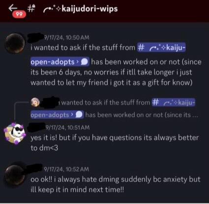 This is a collection of various issues commissioners have had with “Kaijudori,” also known as “GummyGatorAdopts.” Please do not attack anyone mentioned here - this was a last resort.As a somewhat recent commissioner, I've recently felt very disrespected by Kaijudori's behavior. I searched in many, many areas and talked to other people who have felt the same way for their stories, or responded to others speaking out about their own.See the instagram for more info & updates.TLDR: Over 200 commissions (and constantly growing) on queue, lack of communication with commissioners, disrespecting commissioners, 6+ month wait time (while working on collabs and adopts instead), avoiding commissions, etc.
